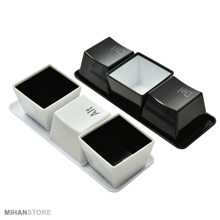 پیاله یا لیوان 3 تایی یک محصول جدید با طراحی ویژه و جالب می باشد که بصورت دکمه های کیبورد طراحی شده و کلمه های Ctrl - Alt - Delete بر روی انها نوشته شده که در صورت قرار دادن بر روی سینی مخصوص کاملا شبیه به صفحه کیبورد می باشد‏.‏ این لیوان های زیبا به گونه ای طراحی شده اند که شبیه به ماگ یا پیاله هم هستند وبه نوعی کارکرد چند منظوره دارند و شما می توانید برای سرو انواع سالاد و یا تنقلات نیز از این ماگ ها استفاده کنید و زیبایی و جلوه خاصی به میز پذیرایی خود بدهید‏.‏