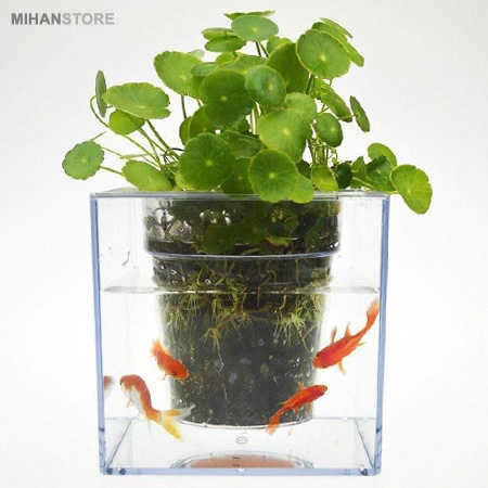 گلدان آکواریومی از سری لوازم تزئینی لوکس و مدرن است که امکان نگهداری انواع گیاه و آبزیان را به صورت همزمان در یک جا فراهم می کند. این آکواریوم دارای یک استند برای نگهداری گلدان است که می توانید گل های زینتی ، سبزه ، کاکاتوس و . . . را بر روی آکواریوم خود داشته باشید. بدنه این آکواریوم از جنس اکرولیک شفاف می باشد و با قرار دادن گلدان داخل محفظه تعبیه شده این گونه به نظر میرسد که گلدان در میان آب و ماهی های آکواریوم به صورت شناور قرار گرفته است و ماهی ها می توانند به سادگی اطراف گلدان حرکت کنند.