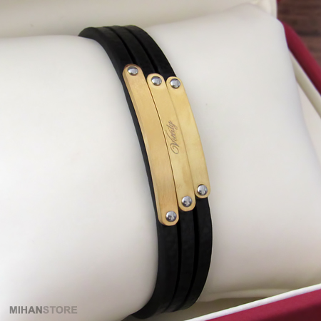 این دستبند در رنگ های استیل مشکی، مسی و طلایی عرضه شده است.